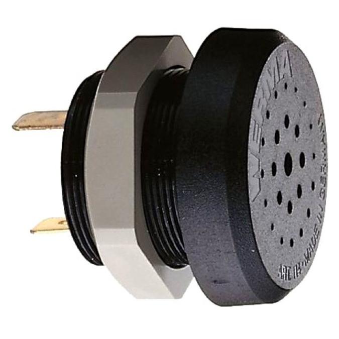 Електрична сирена (зуммер), установка в панель в отвір діаметром 22,5 мм, рівень захисту корпусу IP65, рівень гучності звуку 80dB на відстані 10 см, безперервна тональність звуку, напруга живлення 24 VDC, колір чорний